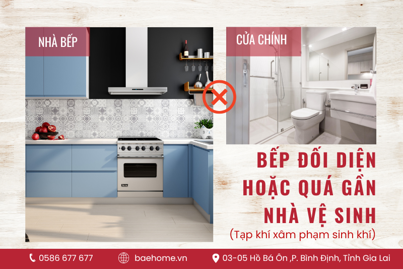 2. Bếp đối diện hoặc quá gần nhà vệ sinh – Tạp khí xâm phạm sinh khí