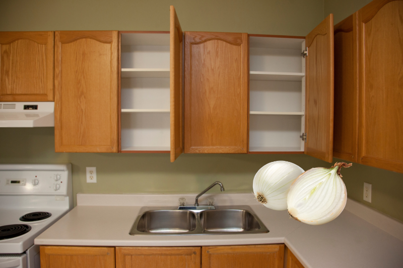 4. Cắt hành tây bỏ vào góc tủ