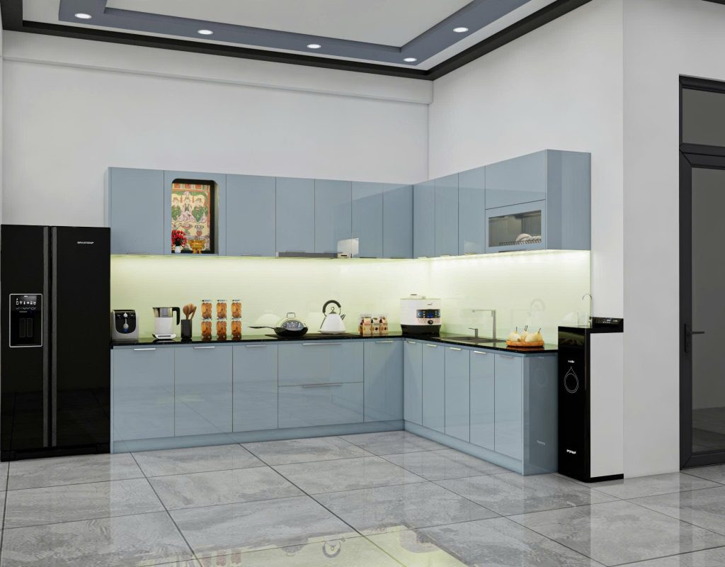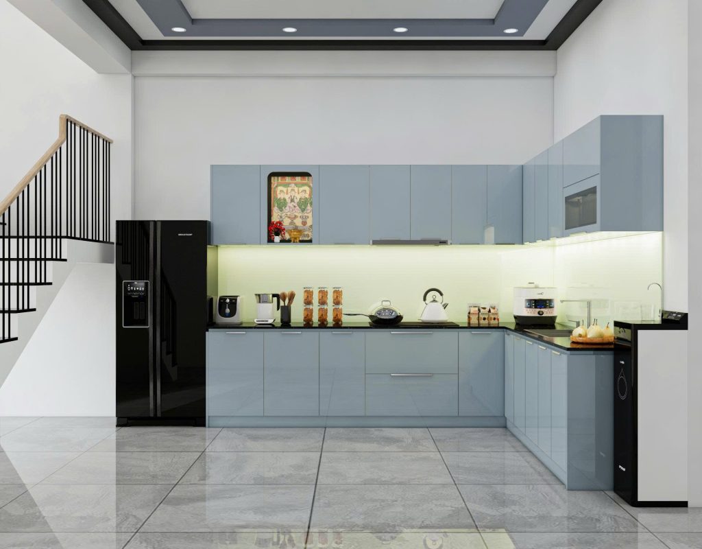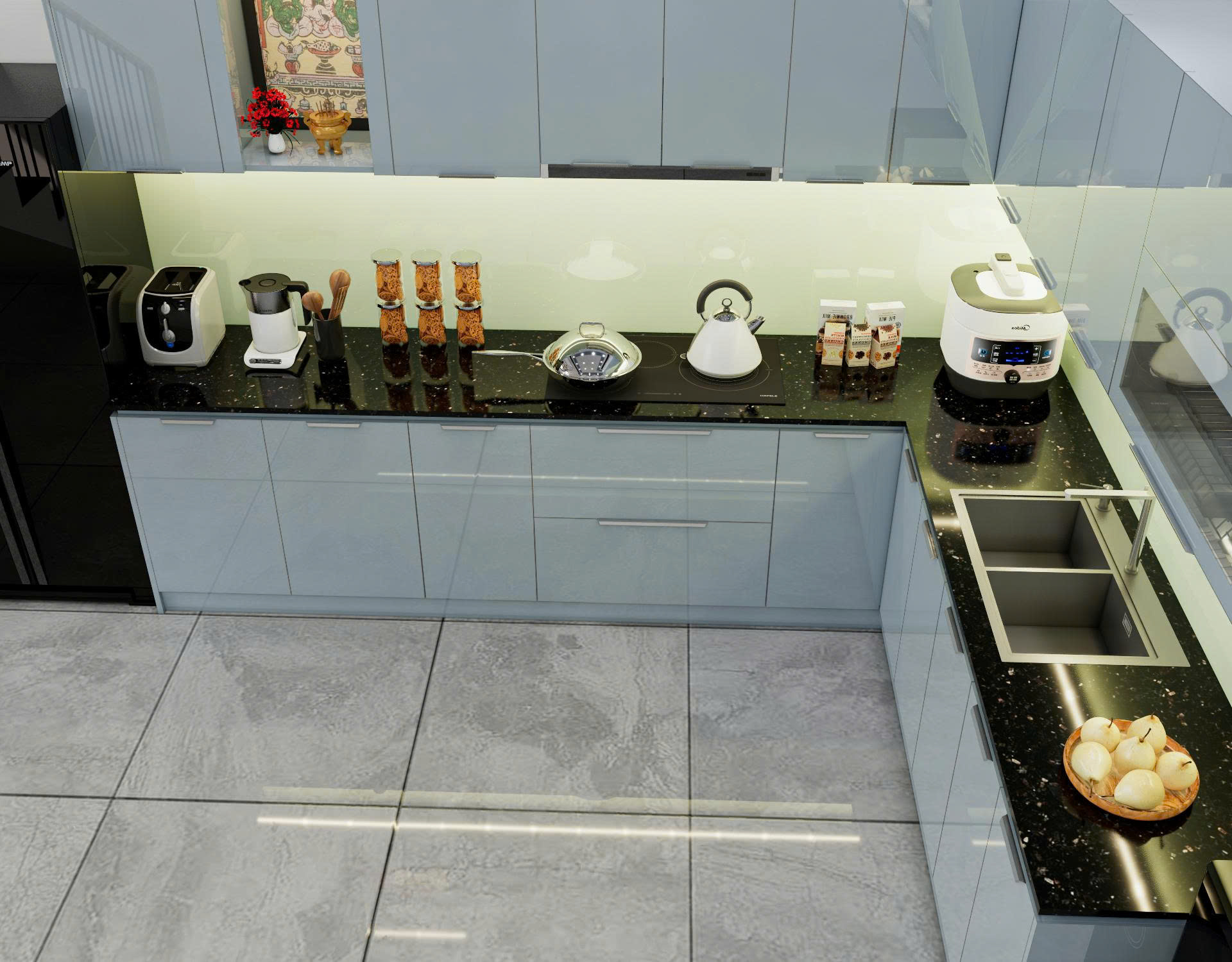 Thiết kế hệ tủ bếp chữ L hiện đại, phù hợp với diện tích căn bếp và thói quen nấu nướng của gia đình.
