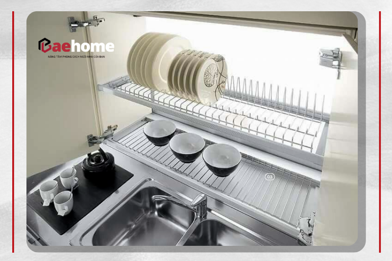 📌 Vị trí lý tưởng: Lắp tại tủ bếp trên – ngay phía trên bồn rửa, giúp thao tác úp bát thuận tiện và tiết kiệm thời gian.