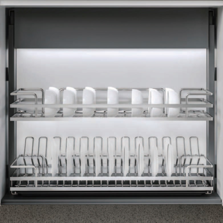 Giá bát đĩa nâng hạ điện Eurogold EMP700 (ESP9970Pro) là dòng phụ kiện tủ bếp cao cấp, được trang bị động cơ điện thông minh, giúp người dùng dễ dàng nâng – hạ khay bát chỉ với một nút bấm. Sản phẩm được sản xuất từ Inox 304 cao cấp, kết hợp hệ nan Oval tinh tế, mang đến vẻ đẹp hiện đại và sự tiện nghi vượt trội cho căn bếp.