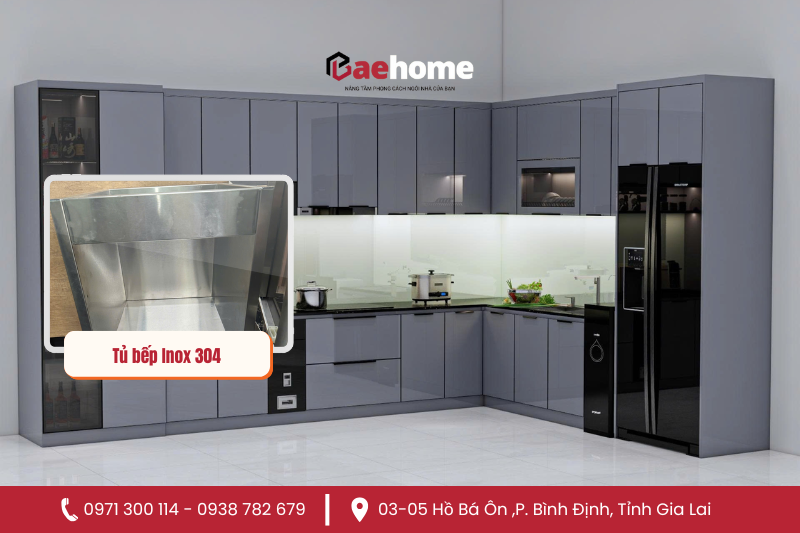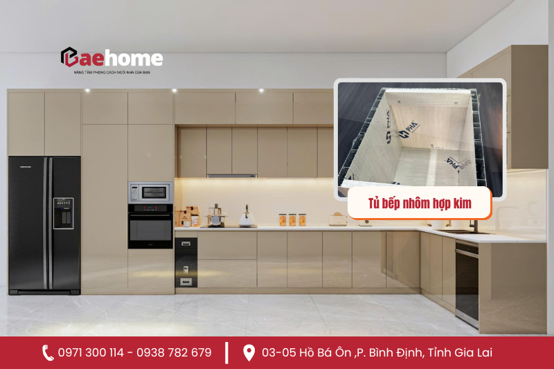 BAE HOME – Thiết kế thi công tủ bếp nhôm hợp kim, inox 304 cánh kính